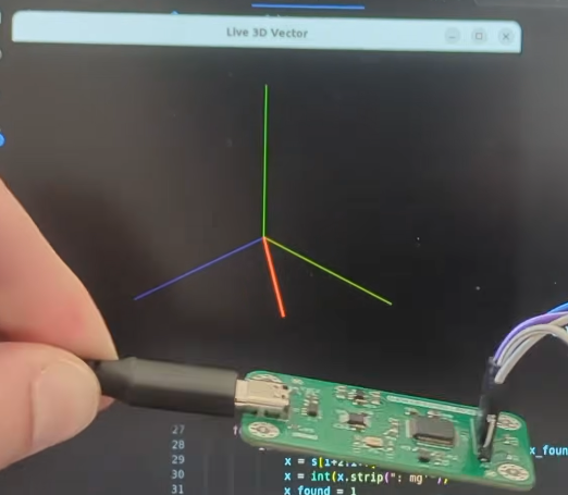 The sofware I made simply reads the I2C accelerometer data (acceleration over X,Y and Z) and then outputs it via UART.