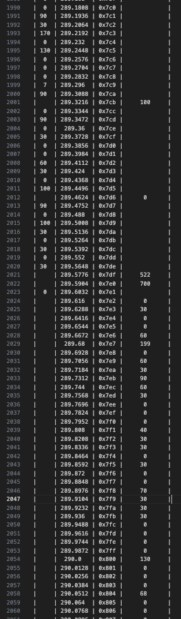 And it’s looking pretty good ! On the left are the bid quantities, on the right the ask quantities and in the middle the associated price bin (adjustable via params in the HDL) and the real BRAM address that stores this value.
